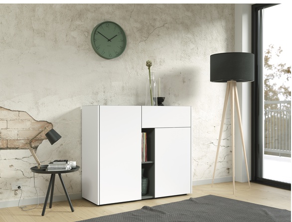 Kalustelevy ja melamiinihartsipinnoite varmistavat senkin pitkäikäisen ja helppohoitoisen rakenteen, kun taas ABS-kanttaukset ja ovien hidastimet tuovat lisämukavuutta jokapäiväiseen käyttöön. Saatavilla osina tai valmiiksi koottuna lisähinnasta, senkin mitat ovat 112 × 42 × 96 cm ja paino 45,68 kg.