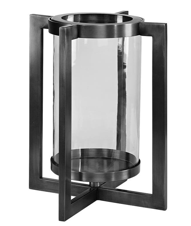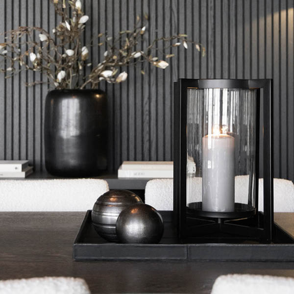 Tukeva teräs- ja lasirakenne takaa lyhdylle pitkäikäisyyden ja ylellisen ulkonäön. Saatavilla mustana, jonka ajaton sävy korostaa lyhdyn selkeää muotokieltä ja tuo tilaan modernia harmoniaa.