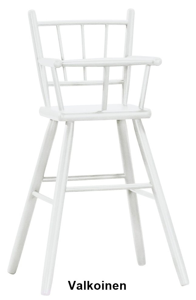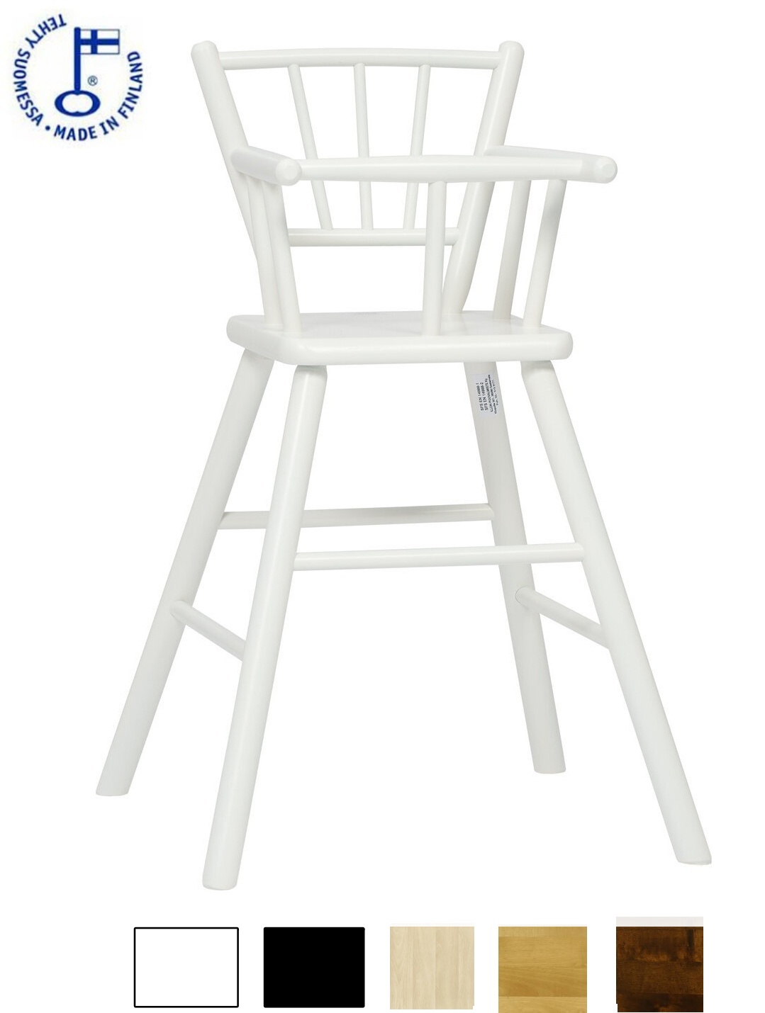 Syöttötuoli: valkoinen, koivu, pyökki, musta, pähkinä. Pehmuste Valkoinen/harmaa nro