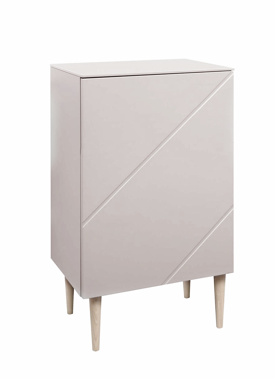 Kaappi on saatavilla kolmessa trendikkäässä struktuurimaalatussa sävyssä – musta, kaura, kaakao, oliviin ja valkoinen – jotka sopivat monenlaisiin sisustustyyleihin. Tuote voidaan myös tilata kaksivärisenä esim siten että kansi on eri värinen samoin voit valita jalkojen värin. Kahden korkeussäädettävän hyllyn ansiosta säilytystila on helposti muokattavissa omien tarpeiden mukaan, ja oven kätisyys on valittavissa, mikä tekee kaapista käytännöllisen ratkaisun erilaisiin tiloihin.