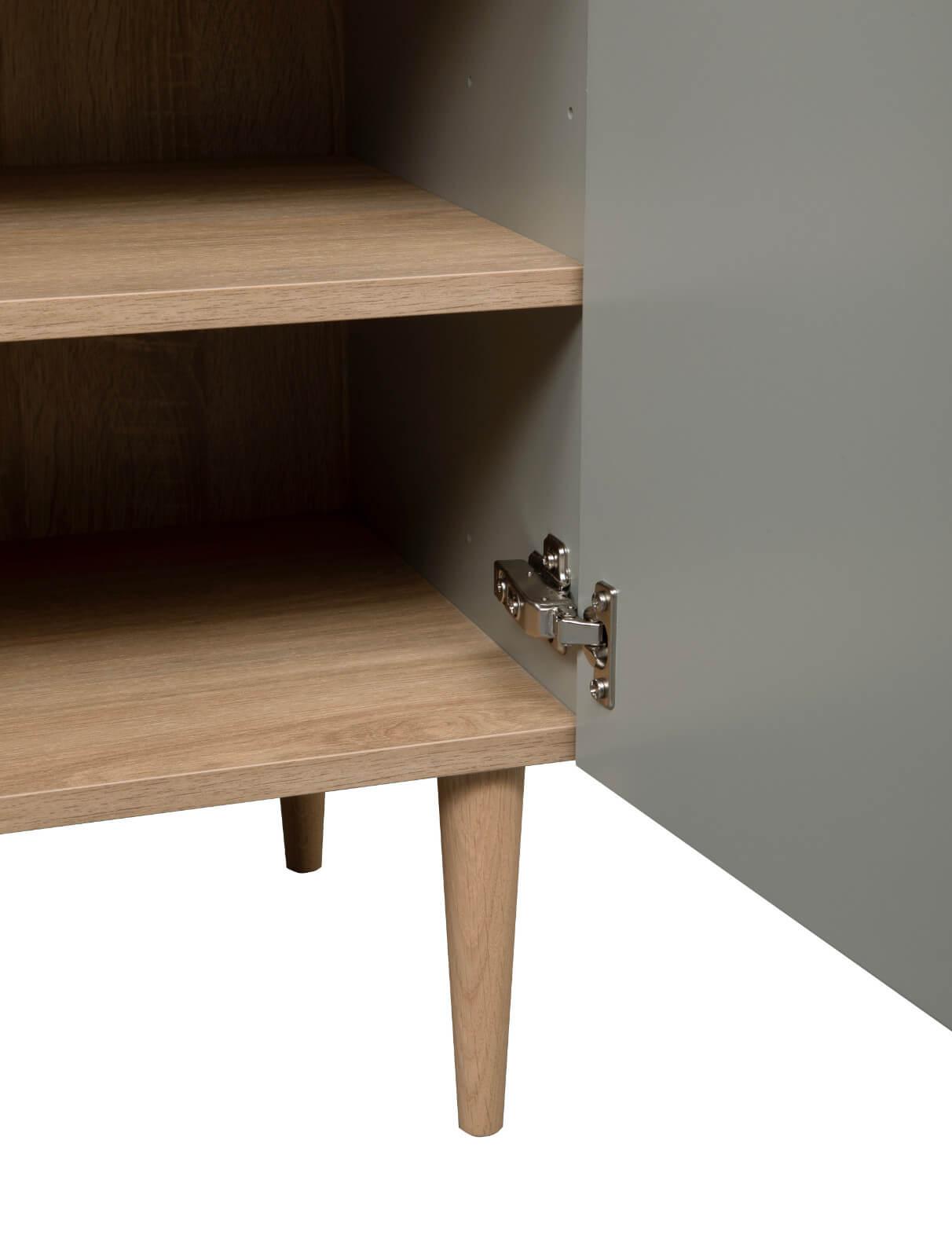 Vilja V1.1 -kaappi on valmistettu huolellisesti valituista ja kestävistä materiaaleista: runko on maalattua MFC-levyä, kansi ja etusarjat MDF-levyä sekä jalat maalattua massiivipuuta. Tämä laadukas yhdistelmä takaa kaapin tukevuuden ja ajattoman kauneuden, joka kestää vuosia.