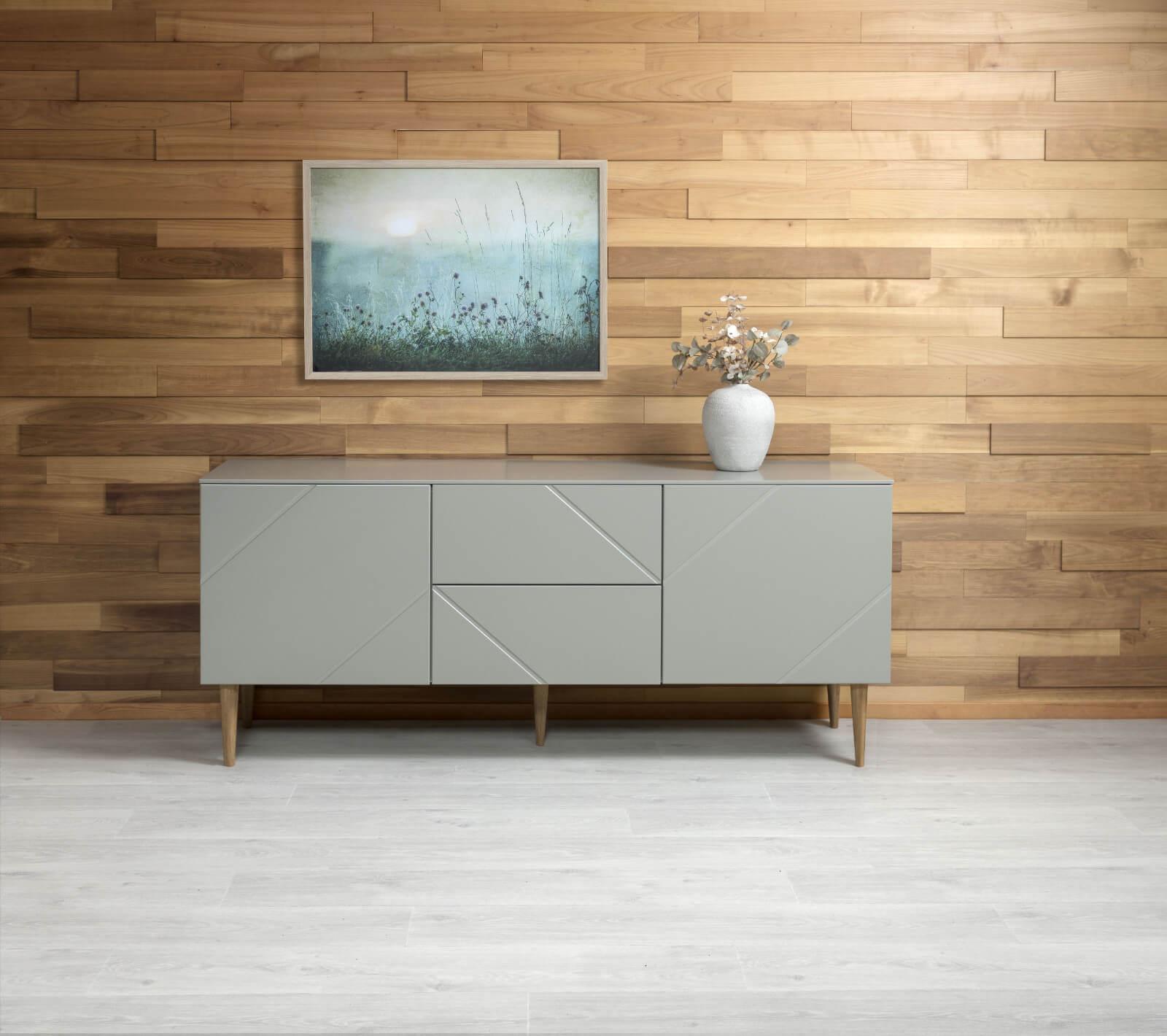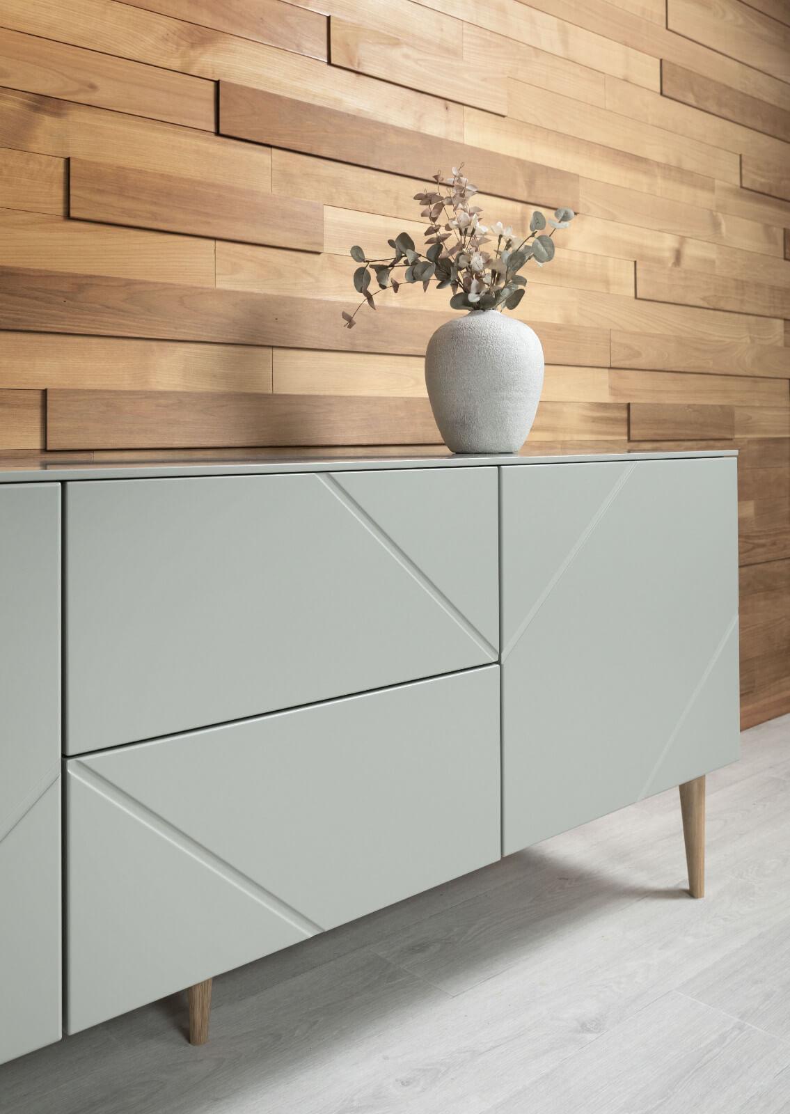 Kaksi kaappia korkeussäädettävillä hyllyillä ja keskellä sijaitsevat kaksi vetolaatikkoa tarjoavat runsaasti tilaa kodin tavaroille. Taso on tilattavissa myös seinäkiinniitteisenä. Taso yhdistää käytännöllisyyden ja estetiikan, pitäen tilan siistinä ja harmonisena.