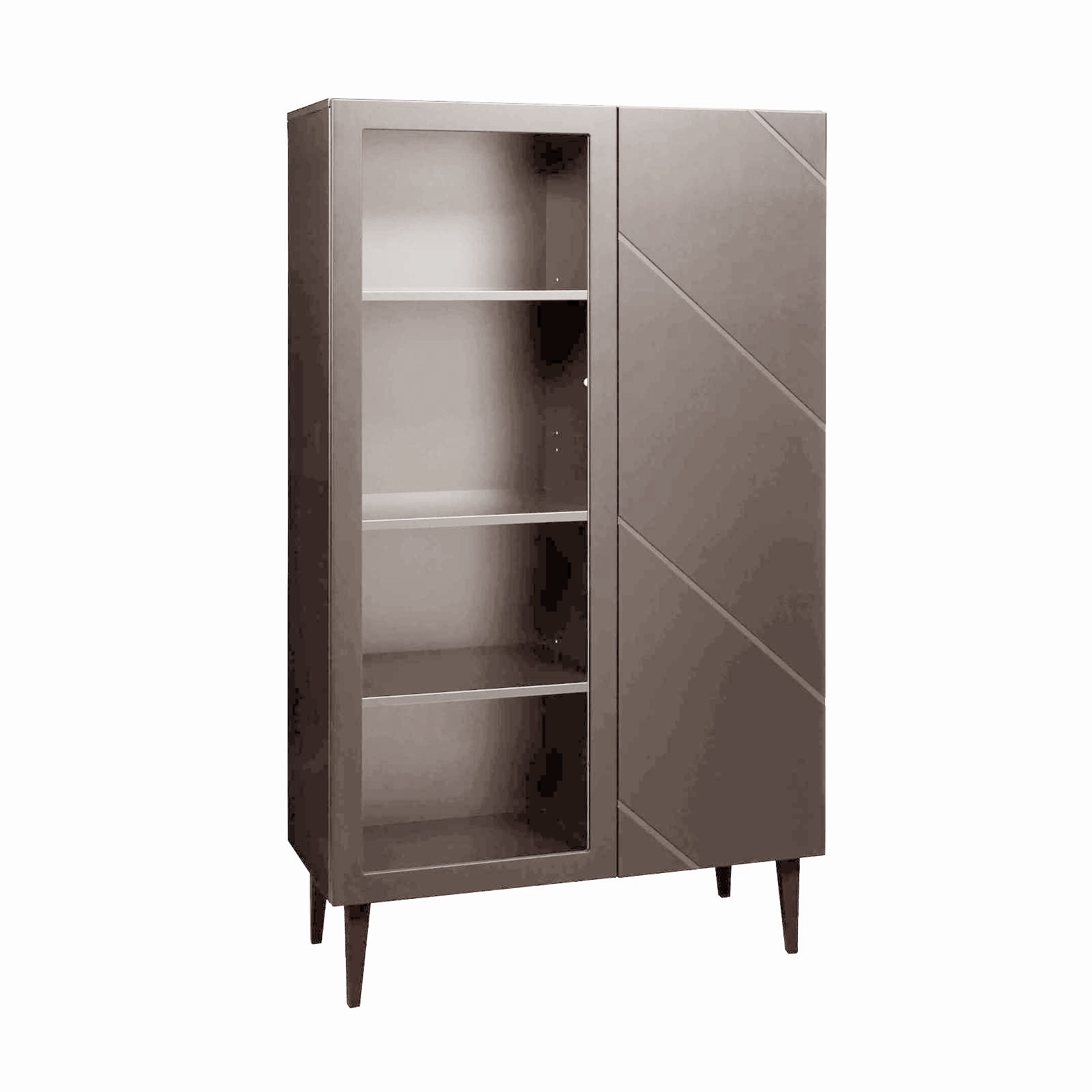 Maalattu MFC- ja MDF-levy yhdistettynä massiivipuujaloilla luo kestävän ja elegantin kokonaisuuden. Vilja V8.1 vitriini on saatavilla kolmessa trendikkäässä struktuurimaalatussa sävyssä – musta, kaura, kaakao, oliviin ja valkoinen – jotka sopivat monenlaisiin sisustustyyleihin. Tuote voidaan myös tilata kaksivärisenä esim siten että kansi on eri värinen samoin voit valita jalkojen värin. Kolmen korkeussäädettävän hyllyn ansiosta säilytystila on helposti muokattavissa omien tarpeiden mukaan, ja oven kätisyys on valittavissa, mikä tekee kaapista käytännöllisen ratkaisun erilaisiin tiloihin.