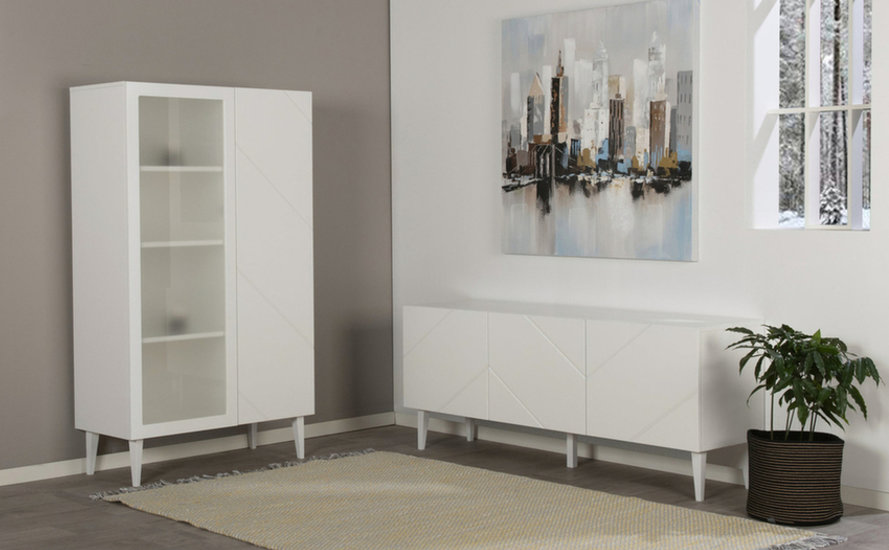 Vilja V8.1 vitriini yhdistää ajattoman skandinaavisen muotoilun ja käytännöllisen toiminnallisuuden, tuoden kotiisi tyylikkään ja kevyen ilmeen. Hienostunut uritus ja korkeat jalat korostavat vitriinin ilmavaa ja modernia designia.