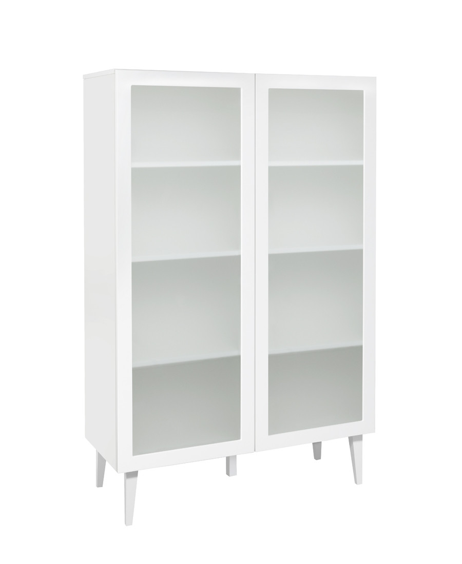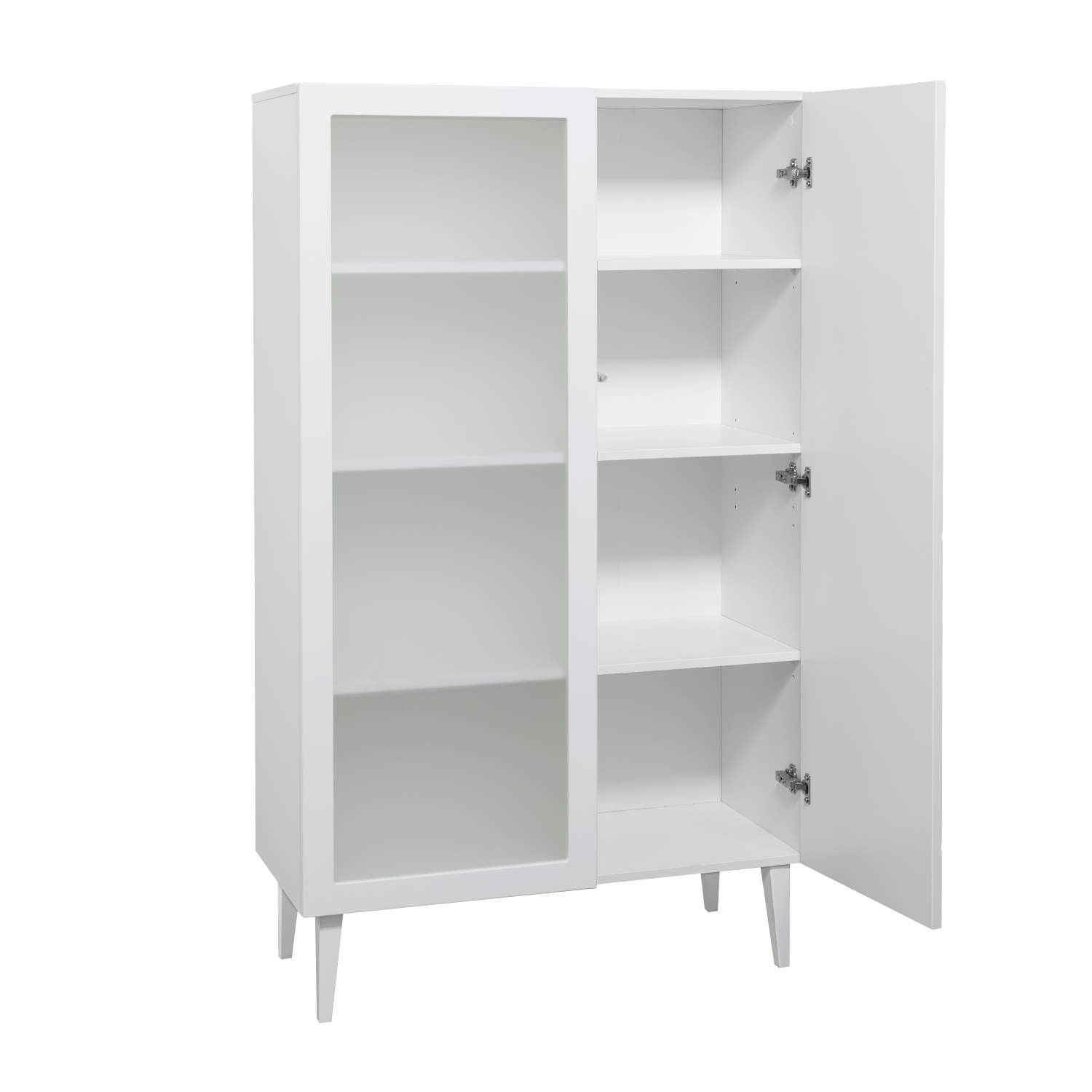 Voit valita maitolasioviseen vitriinin kolme korkeussäädettävää hyllyä – lasia tai puuta – jotka tarjoavat joustavan säilytysratkaisun erilaisille esineille.