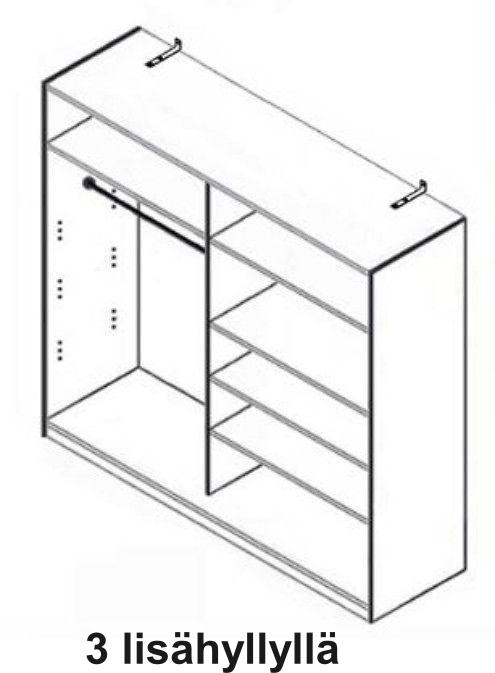 Vakiovarusteluun kuuluvat väliseinä, hattuhyllyt ja vaatetangot takaavat toimivan perusratkaisun arjen säilytystarpeisiin. Voit helposti lisätä lisähyllyjä tarpeesi mukaan, jolloin Winner-komero mukautuu täydellisesti tilan ja elämäntavan tarpeisiin.