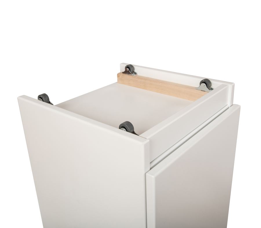 Lisävarusteena tilattavat pyörät tai vetotaso lisäävät käyttömukavuutta ja helpottavat arkea. Kompaktit mitat (37 × 38 × 68 cm) sopivat niin pieniin kuin suuriinkin tiloihin, ja yöpöytä toimitetaan valmiiksi koottuna helppoa käyttöönottoa varten.