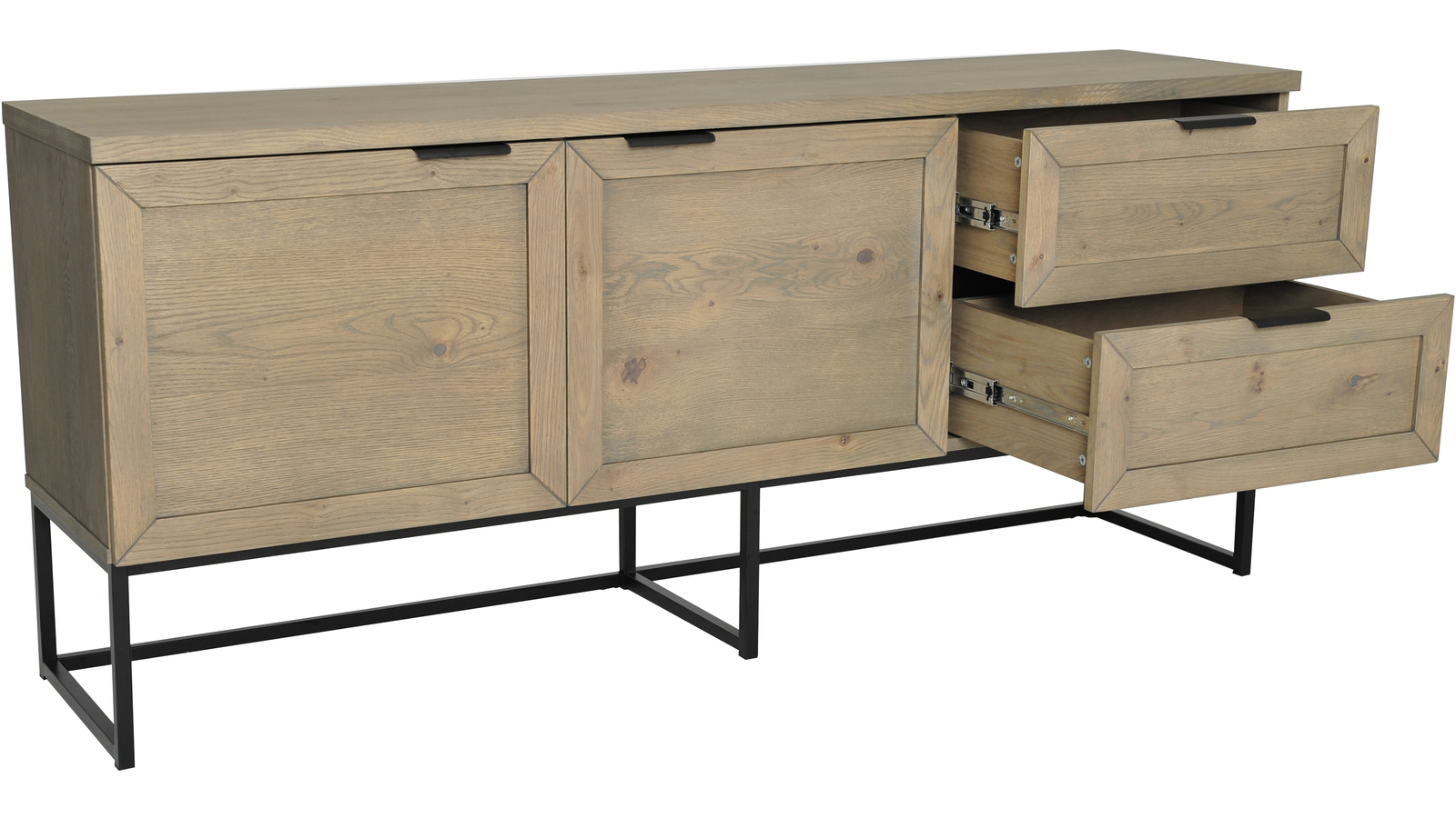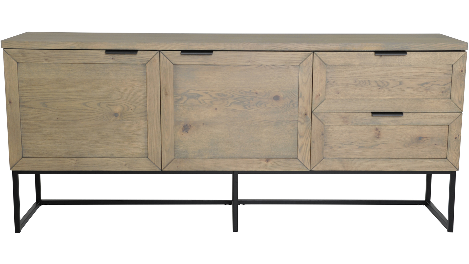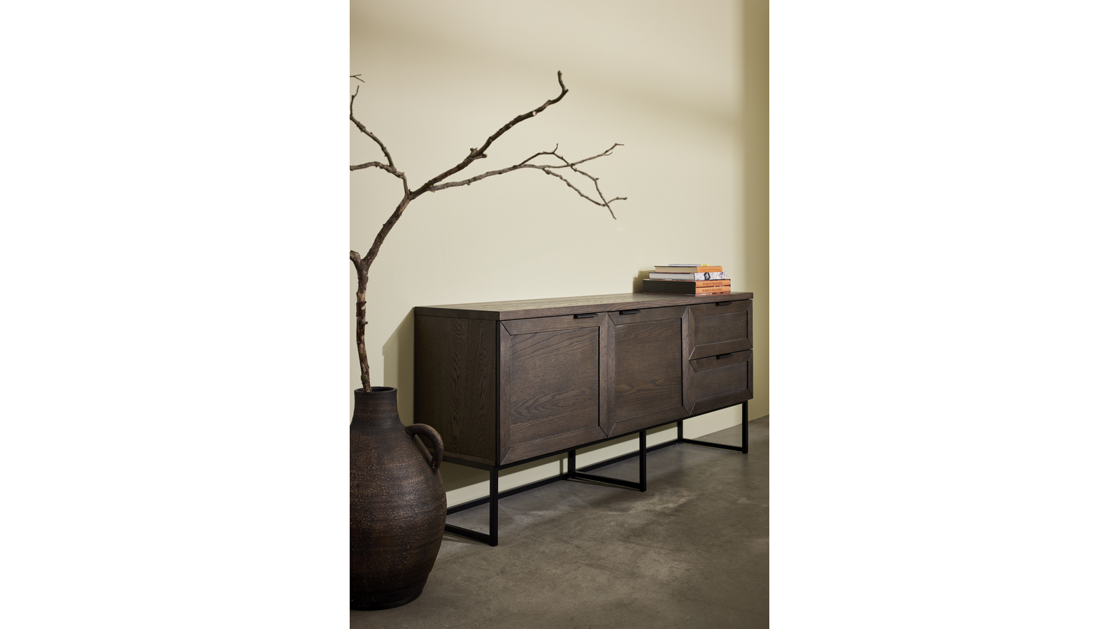 Zion-senkki on villitammesta valmistettu elegantti ja kestävä huonekalu, joka tuo luonnollista lämpöä kotiin. Kahden kaapin ja kahden laatikon ansiosta säilytystilaa on runsaasti. Modernit mustat metallijalat ja siro muotoilu tekevät senkistä näyttävän ja ilmavan osan sisustusta.