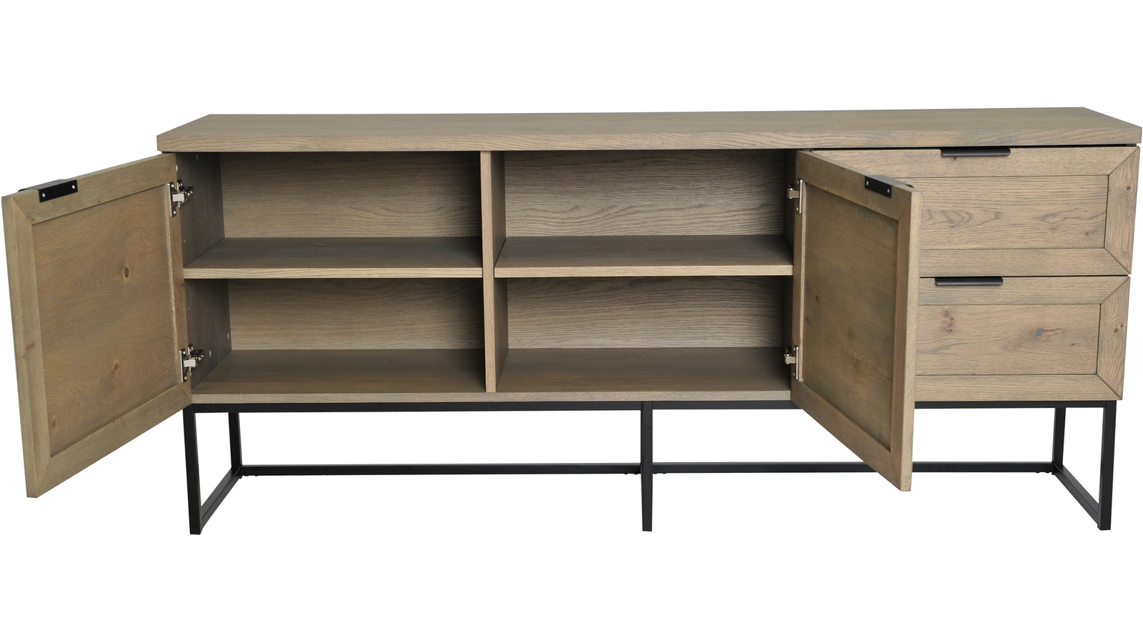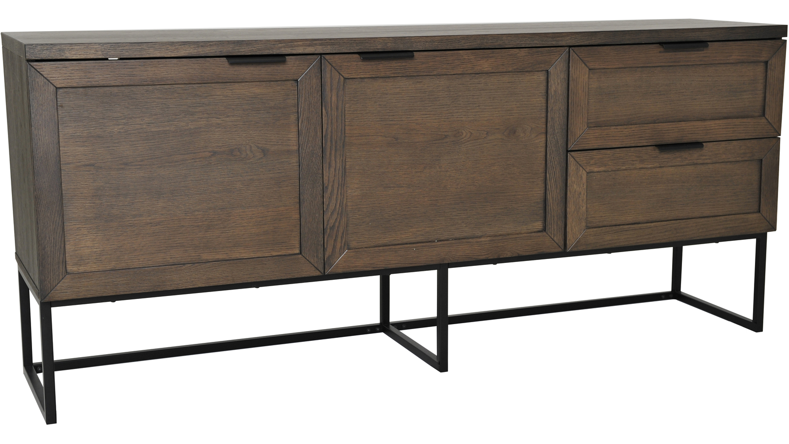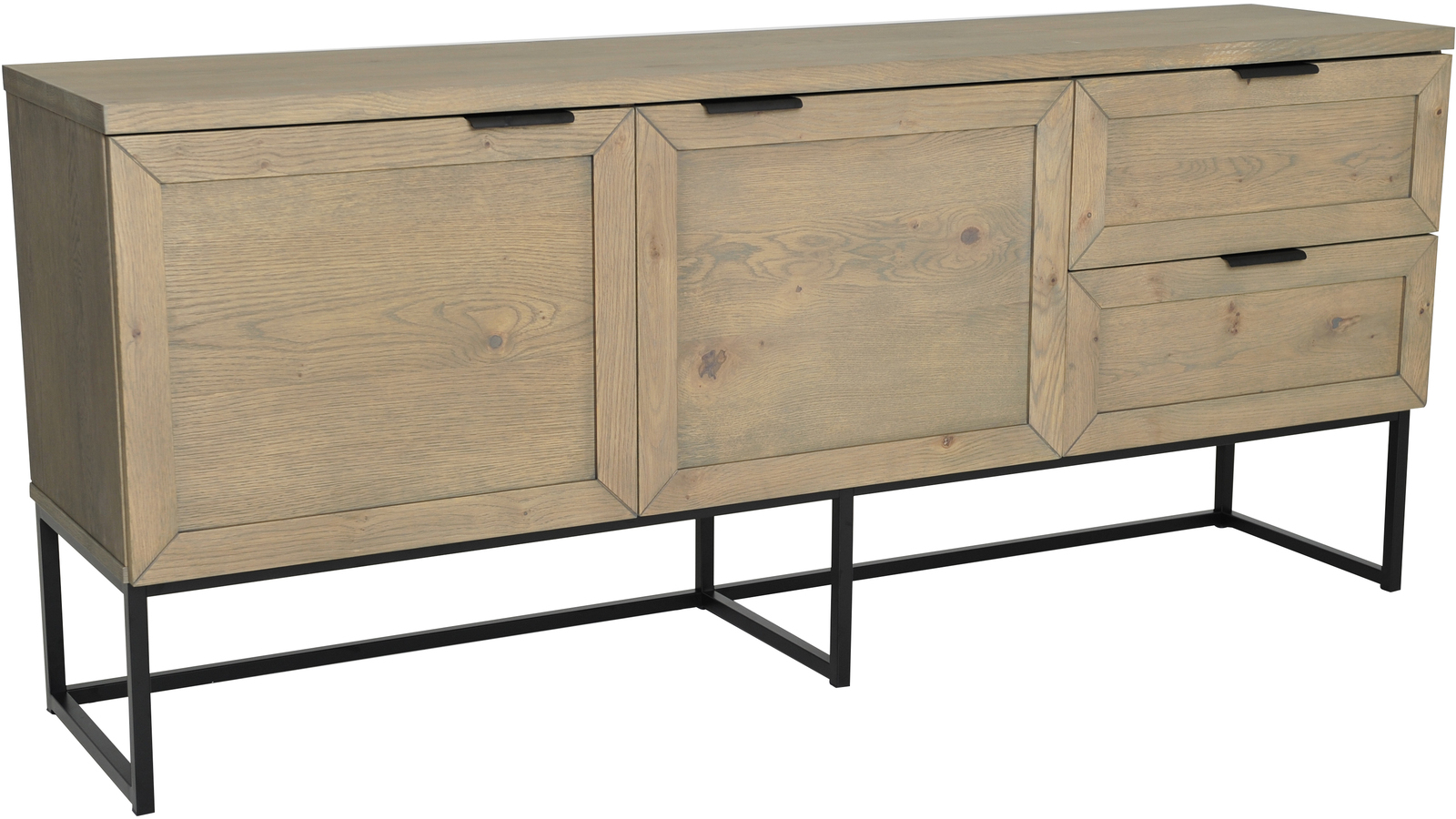 Zion-senkki on villitammesta valmistettu elegantti ja kestävä huonekalu, joka tuo luonnollista lämpöä kotiin. Kahden kaapin ja kahden laatikon ansiosta säilytystilaa on runsaasti. Modernit mustat metallijalat ja siro muotoilu tekevät senkistä näyttävän ja ilmavan osan sisustusta.
